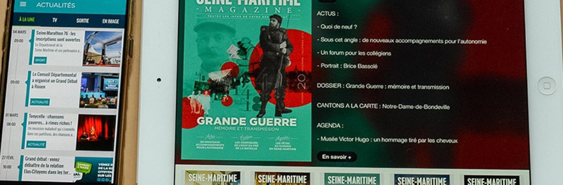 Seine-Maritime Magazine est le magazine d’information de votre collectivité départementale distribué (gratuitement) tous les 2 mois dans votre boîte aux lettres. Vous pouvez le consulter numériquement via l'application Seine-Maritime Magazine qui permet de lire le magazine sur votre tablette et votre smartphone. Elle vous permet de bénéficier d’articles enrichis par des contenus interactifs : diaporamas-photos, vidéos-reportages, lien internet actifs.